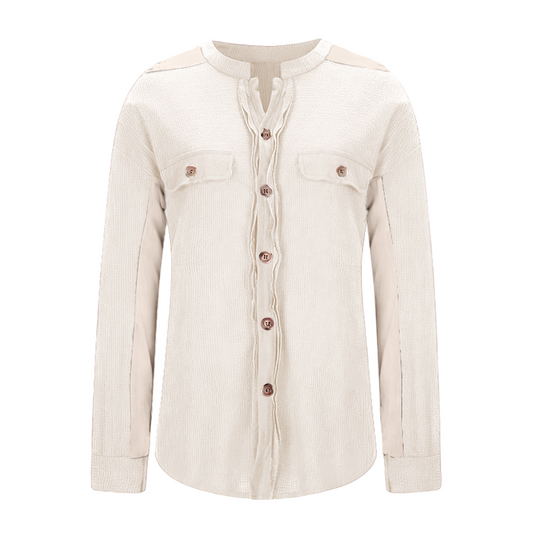 Women's Plain Pocket Button Front Corduroy Shirt