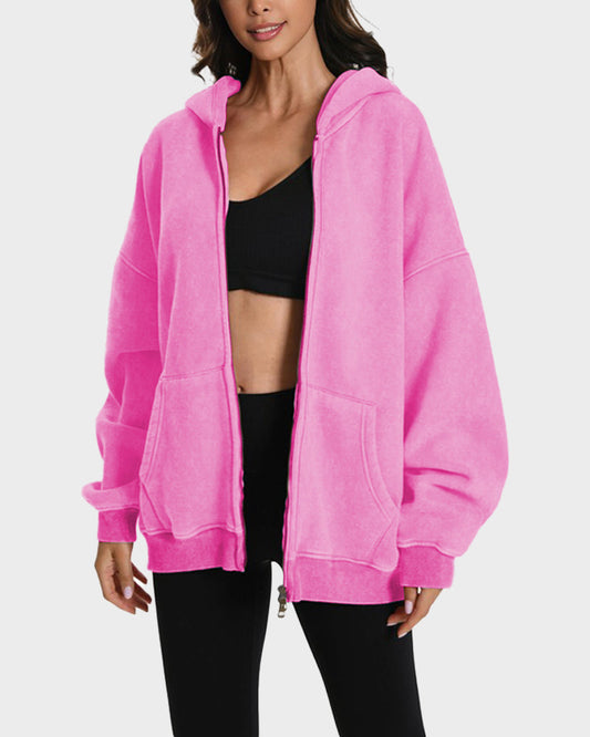 Casual Long Sleeve Zipper Slit Oversized Sweatshirt