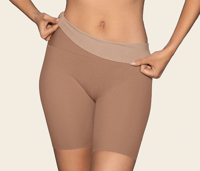 Its high-coverage design offers a smoothing effect, flattening your tummy and slimming down your thighs while reducing the appearance of cellulite. A ruched seam offers a butt-lifting effect. It's ultra-light for all-day comfort. Slip into this short under skirts and dresses to prevent chafing and thigh rub.