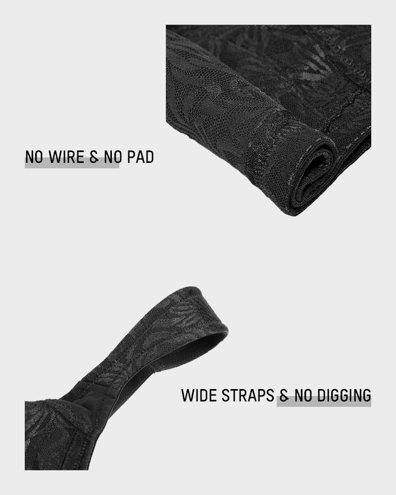 Combining beauty with comfort, this bra features delicate jacquard floral lace and a flattering deep-V neckline for everyday elegance. The ultra-thin fabric feels weightless and breathable, while the tag-free design eliminates irritation. No itching, no scratching — just smooth, skin-friendly comfort with a touch of feminine charm.