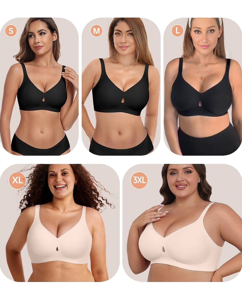 Experience effortless support across every size — from petite to full-figure. The ultra-light, wire-free design pairs with our unique “W” jelly strip technology to deliver 360° lift and contour without discomfort. No matter your shape, this bra flatters your curves, moves with you, and disappears under any outfit for all-day confidence.