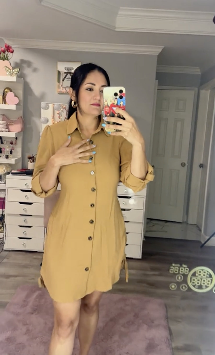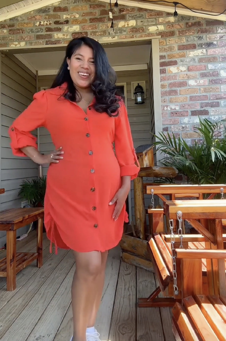 This shirt dress boasts a flattering waist-cinching design that accentuates your figure, while the adjustable drawstring hem lets you customize your look. Step out in style and confidence for any occasion!