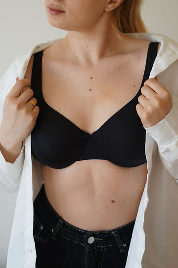 Crafted from buttery-soft, mask-like fabric with incredible stretch, this bra feels like a second skin. The breathable, lightweight material adapts to your body, keeping you cool and fresh. Designed for all-day comfort, it’s soft yet supportive – an everyday essential that combines elegance with practicality.