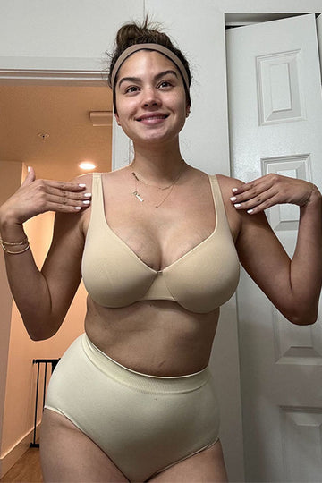 The heightened sides and full coverage cups gently lift and shape while reducing side bulges, creating a more streamlined bustline. Wide straps distribute pressure evenly for comfort, while the seamless back ensures a smoothing effect. Perfect for women seeking natural lift and reliable support all day long.