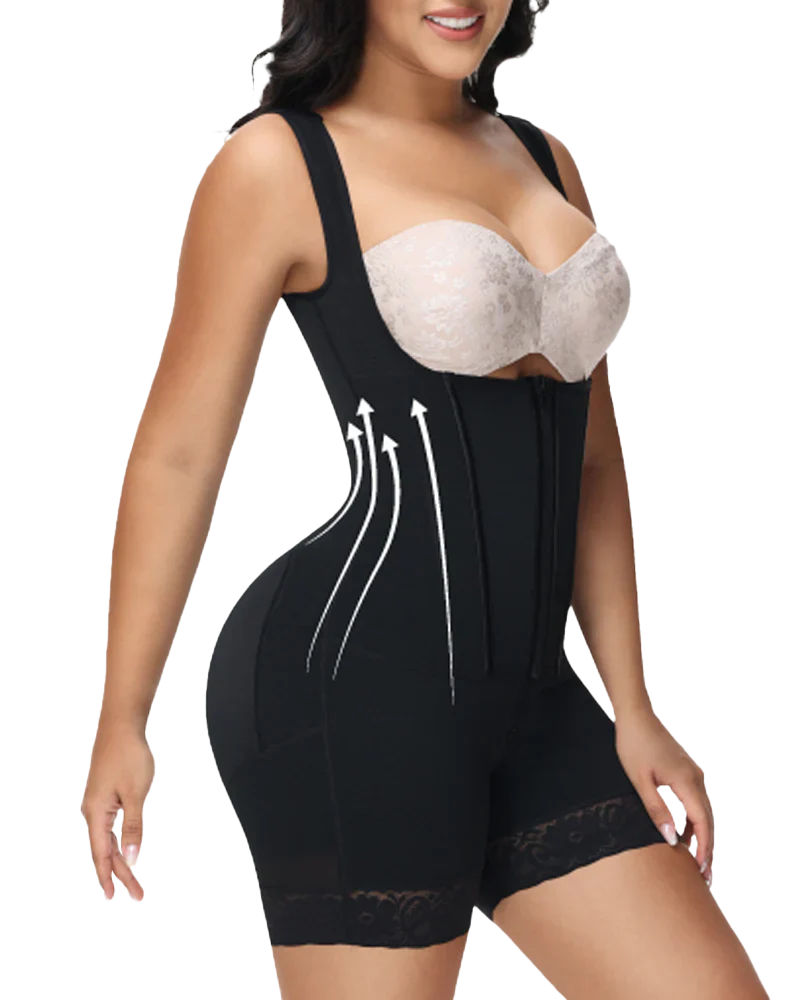 The single-layer fabric in the hip area of this shapewear naturally tightens and lifts the buttocks, creating a rounded, lifted silhouette. The open-bust design gently supportsthe chest without squeezing, allowing you to wear your favorite bra for a confident, polished look.