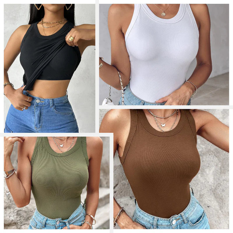 Our tank top's body-hugging ribbed knit fabric smooths out any unwanted bulges, giving you a sleek, streamlined silhouette. Say goodbye to underarm and back rolls! With its full back design, you’ll get all the coverage and support you need to feel comfortable and confident all day long.