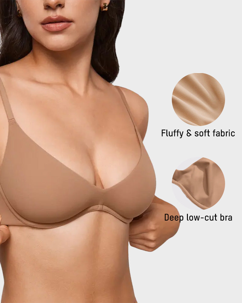 Designed with a deep plunge scoop, this bra disappears under camisoles and low-cut tops, creating a flawless, invisible finish. Perfect for smaller busts, it naturally enhances without extra padding, while for fuller busts it creates a minimizing effect. A versatile must-have for confidence and effortless style.