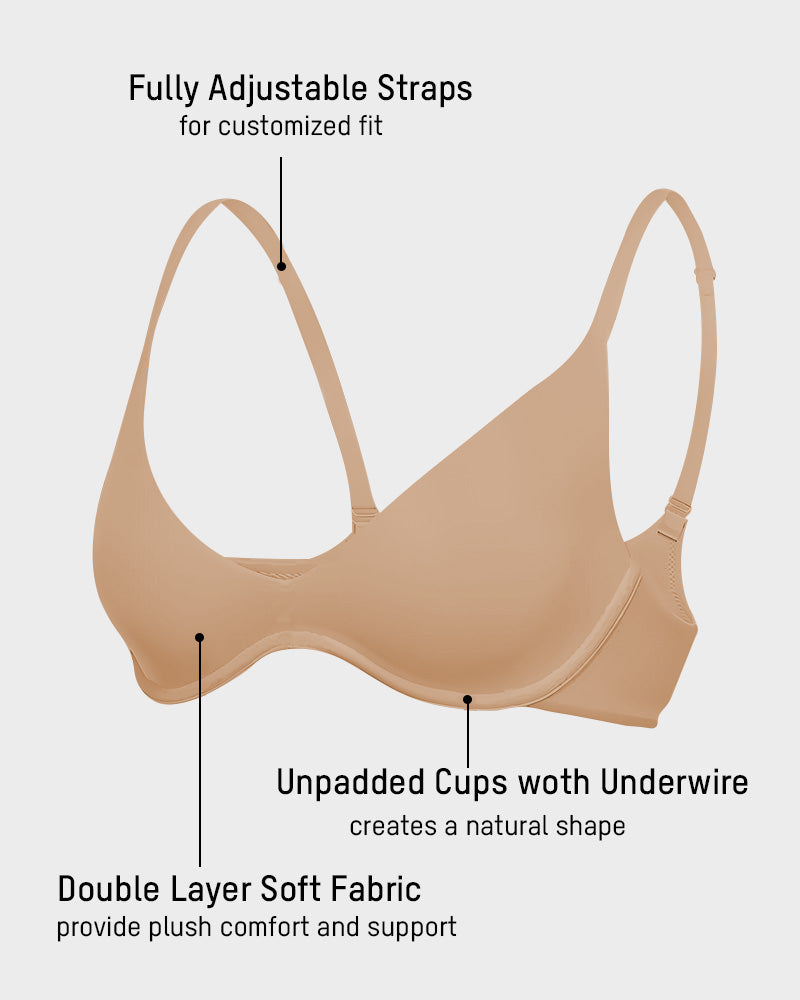 Non-padded and unlined cups create a natural silhouette while adjustable straps let you tailor the fit to your comfort. The combination of underwire structure and minimal design makes it a timeless essential—delivering effortless confidence whether worn casually or styled for special occasions.