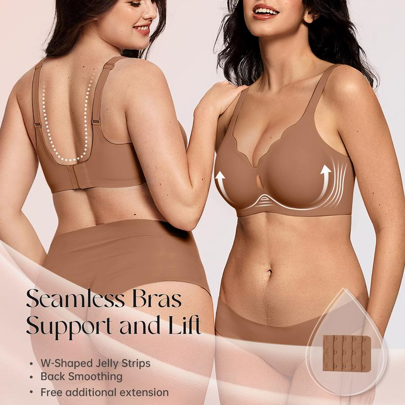 ✨ Comfortable & Soft ✨ Exquisite Water drop small window allows sexiness and breath ability to coexist, lightweight and comfortable,, made from 55% Nylon & 45% Spandex, no underwire, soft, smooth, stretchy and comfortable, breathable and no odor. Our wireless push up bra hug your body gently, no restraint. An comfortable bras for women to wear it all day.