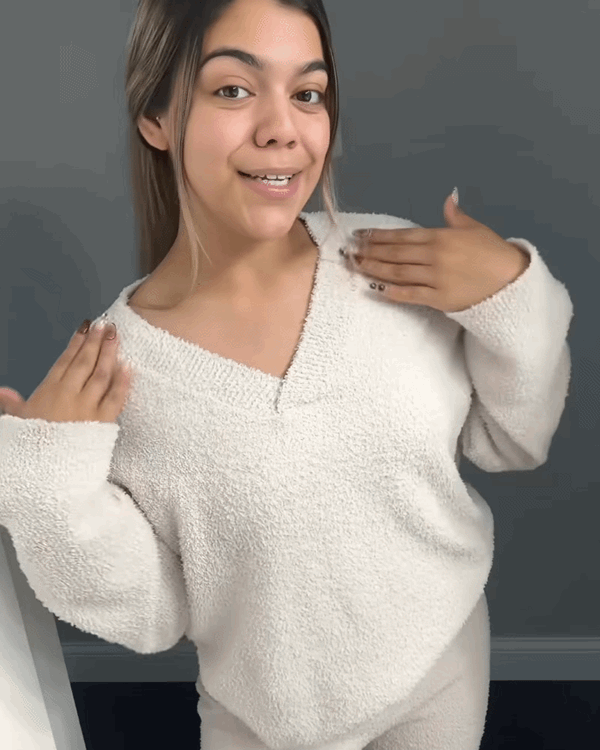 Made from premium fuzzy knit that’s softer, warmer, and stretchier than regular fleece. No stiff texture, no weight — just cloud-light warmth that stays breathable and comfy. Once you feel it, regular lounge sets will never feel the same.